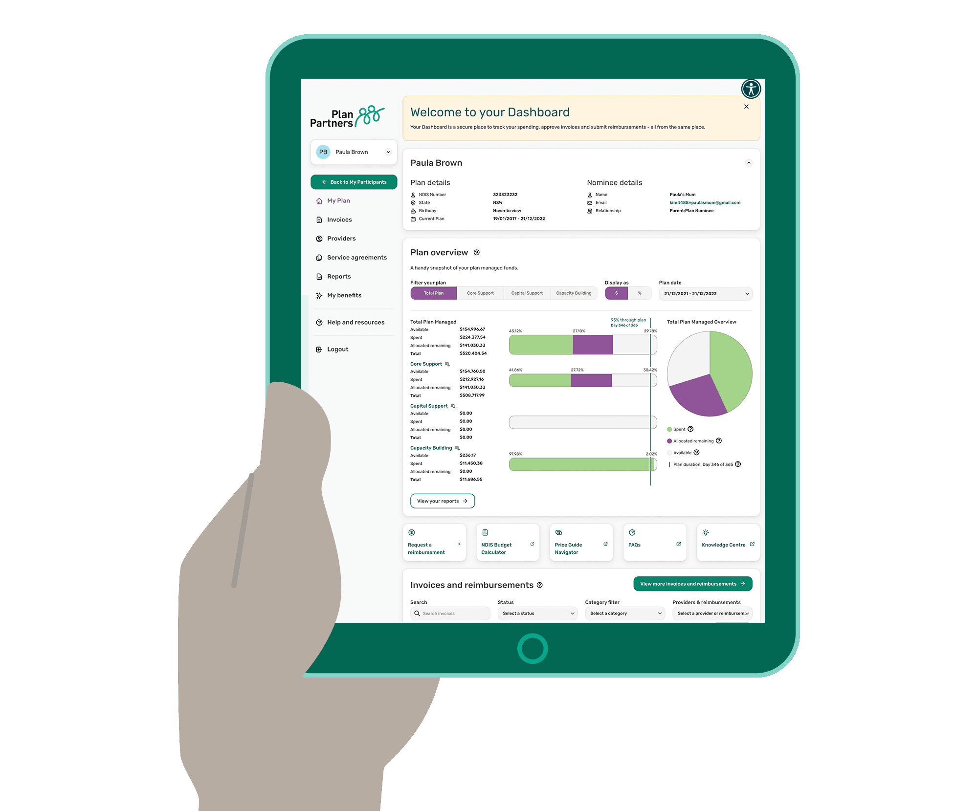 A new dashboard customised for participants, service providers and support coordinators.
