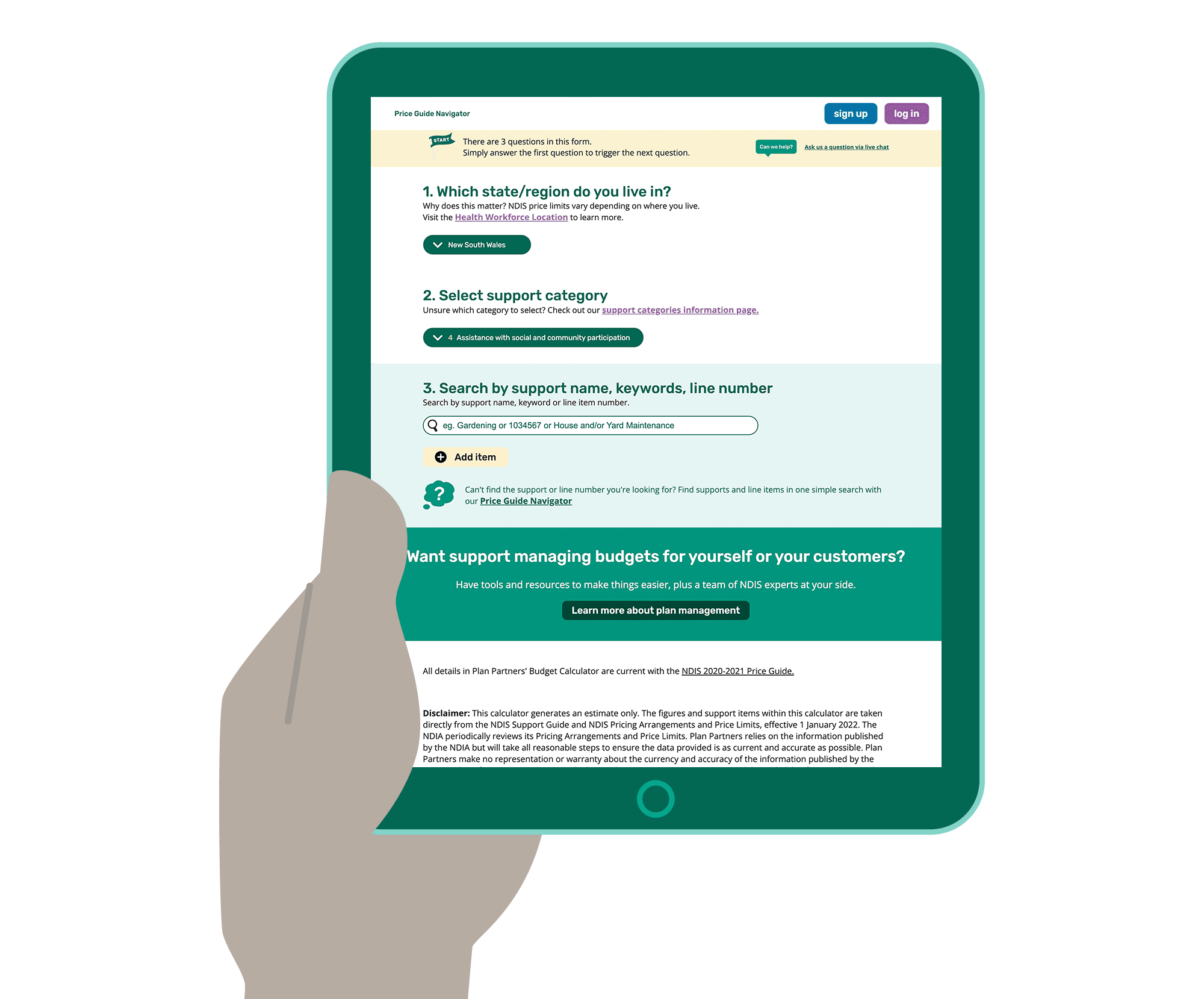Plan Partners' NDIS Budget Calculator helps you understand the cost of supports according to the NDIS Price Guide. Quickly calculate costs for multiple items to easily build budgets and organise supports and services over time.